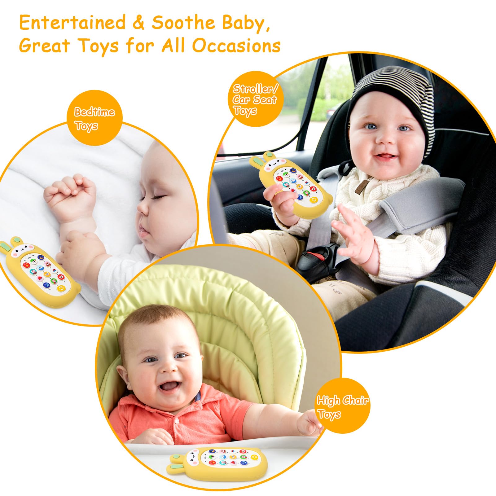 • Les jouets pour téléphones portables pour tout-petits sont conçus pour les petites mains et sont de la taille parfaite pour un divertissement facile pour les bébés. Le son silencieux est inférieur à 65 décibels et dispose de deux niveaux de contrôle du volume. Cela ne vous dérangera pas du tout, les bébés peuvent jouer avec dans les lieux publics.