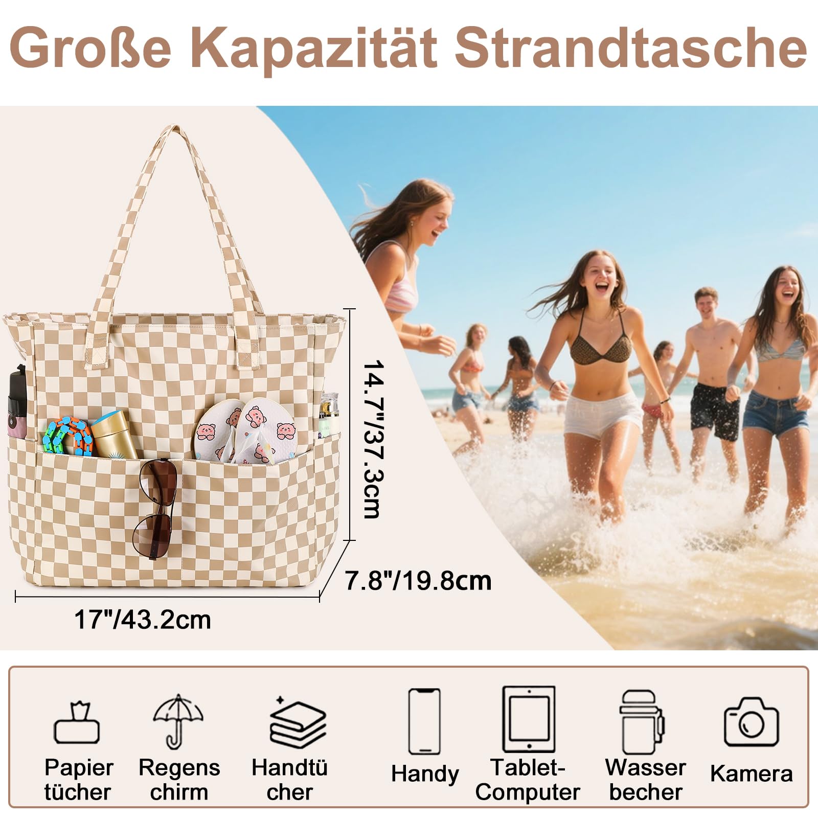 - Grand sac de plage avec 8 poches: 44,5 x 20,32 x 40 cm, d'une capacité de 45 L, le grand compartiment principal offre de l'espace pour toutes les choses importantes pour votre famille (3-4 membres de la famille), comme des vêtements de rechange, des sandales, des serviettes de plage, maillot de bain, bouteilles d'eau, mais peut toujours utiliser les 4 poches extérieures et 2 poches intérieures pour des choses importantes supplémentaires (bouteilles d'eau, jouets de sable pour enfants, collations, lunettes de soleil, etc.)