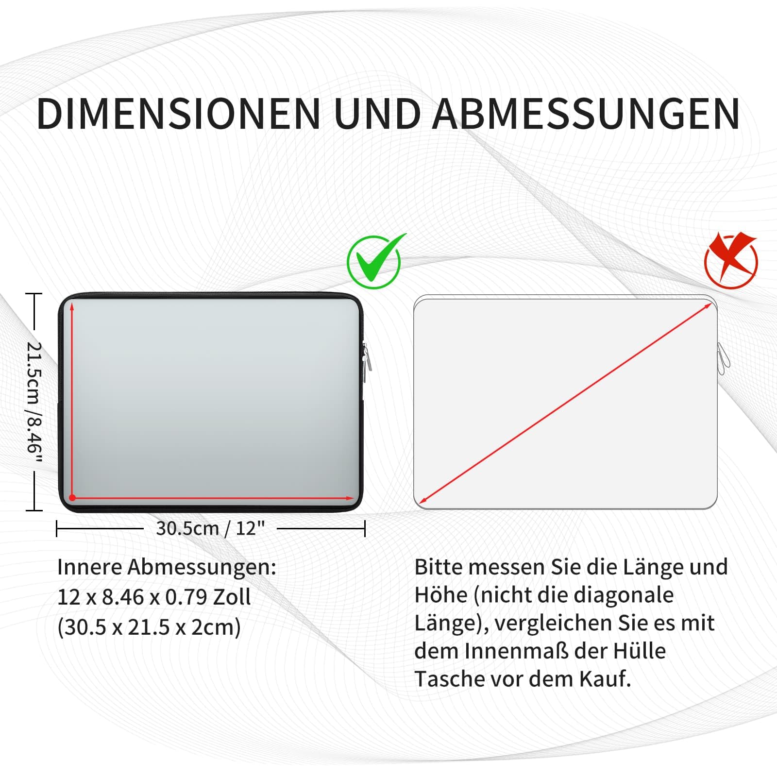 • Spécialement compatible avec les MacBook 11-11.6/ordinateur portable/tablette/notebook.Dimensions extérieures:31.5 x 23 x 2.0 cm(12.4 x 9.06 x 0.8 inch),Dimensions intérieures : 30,5 x 21,5 x 2,0 cm(12,01 x 8,46 x 0,8 inch).Si vous avez besoin d'un ajustement plus ou moins serré, veuillez vérifier les dimensions réelles de votre ordinateur portable avant d'acheter, car les modèles et les marques ont des tailles différentes.