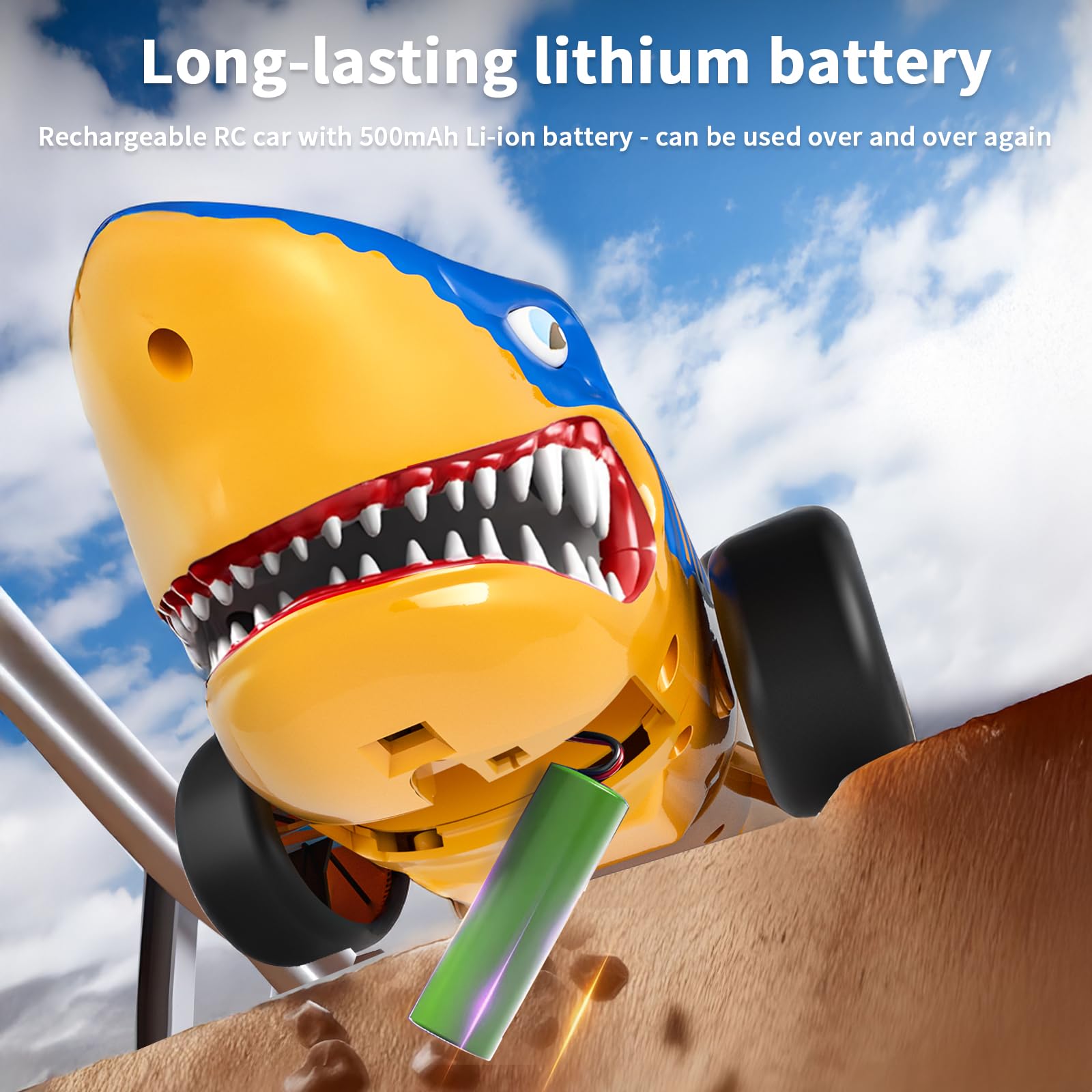 Jouet de Voiture RC Shark pour Enfants, voiture télécommandée 2,4 GHz avec Queue Pivotante et Lumières LED, voiture télécommandée