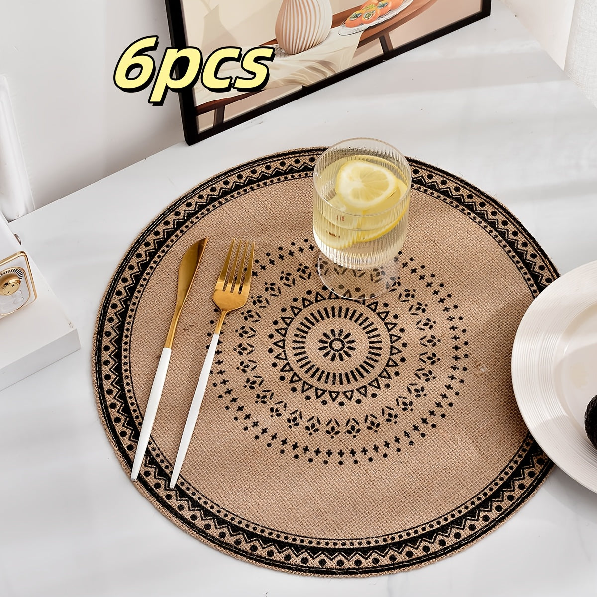 Lot de 6 tapis de jute bohémien, tapis ronds antidérapants pour la cuisine, le mariage, la décoration de la maison, la décoration de la table, fait à la main