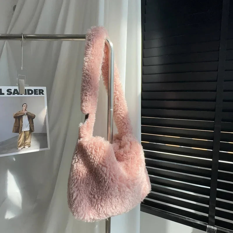 Sacs à Bandoulière En Peluche Douce En Laine de Mouton Artificielle, Sac à Bandoulière De Grande Capacité, Sac Fourre-Tout