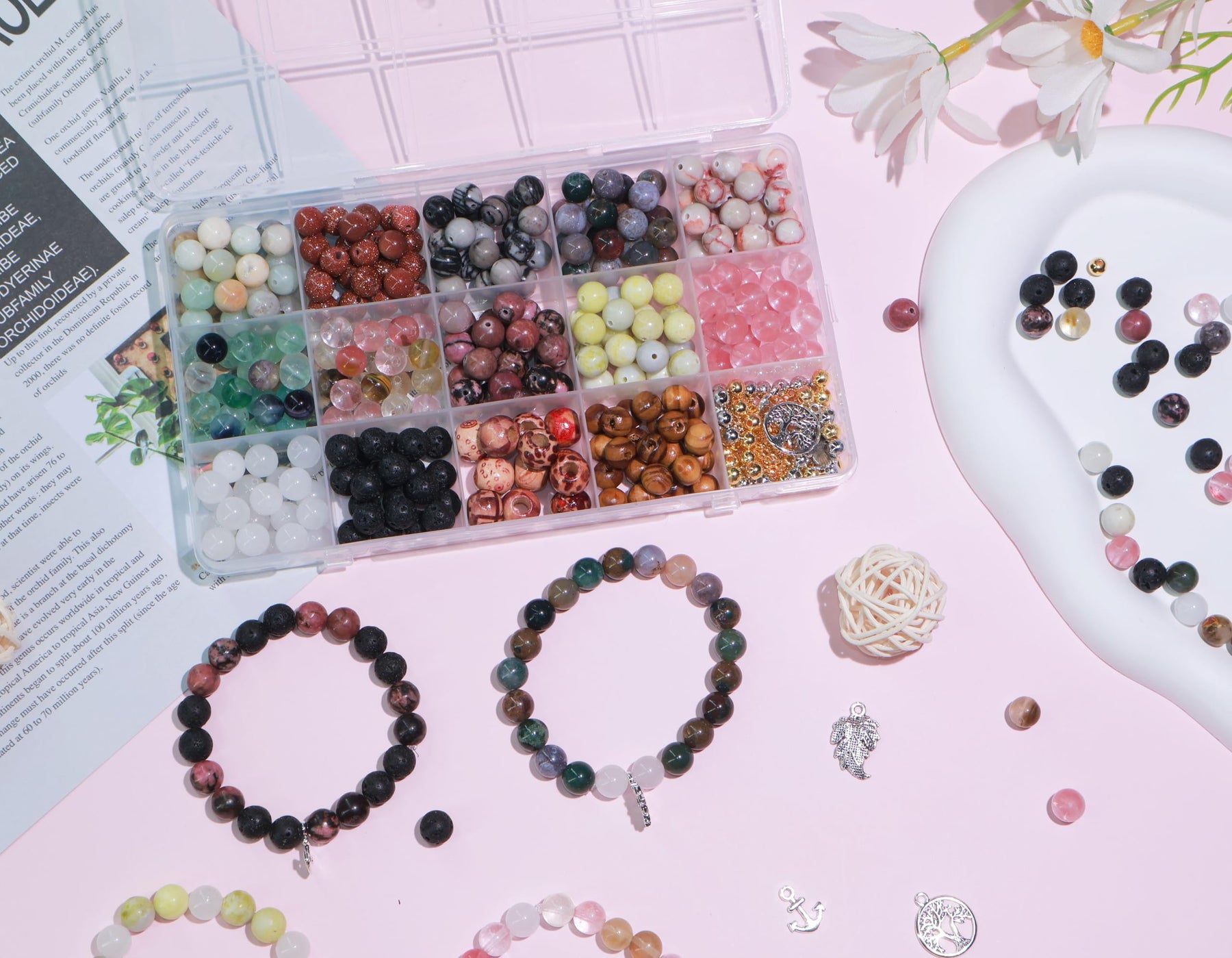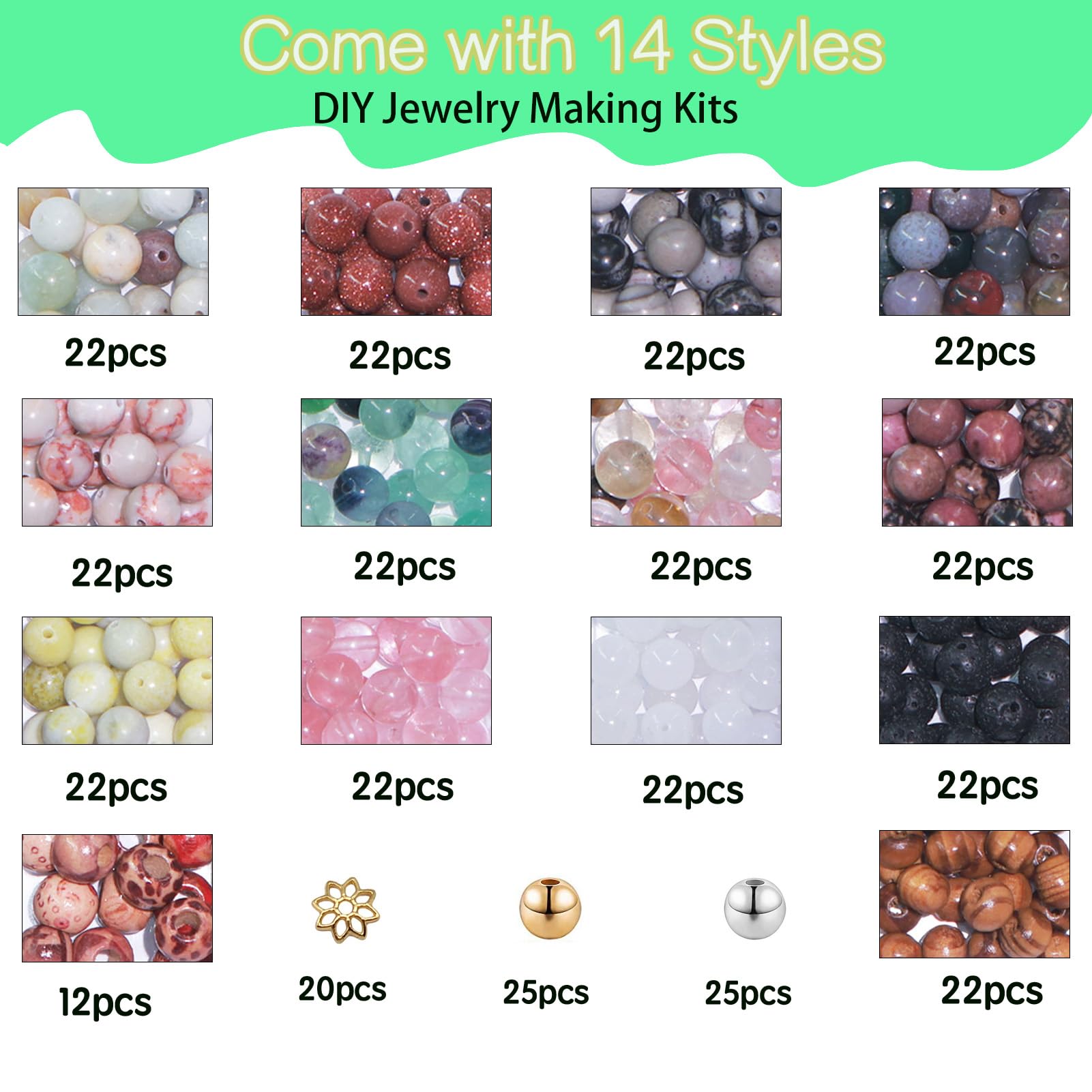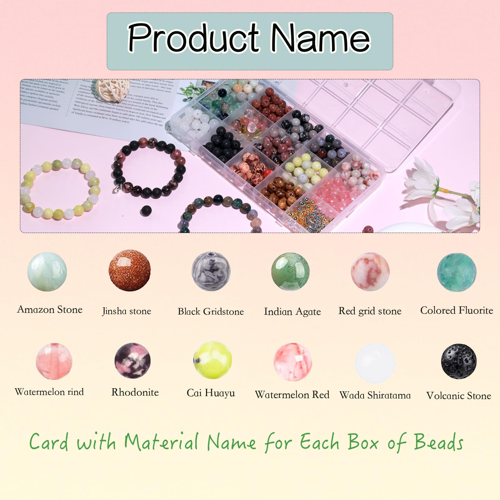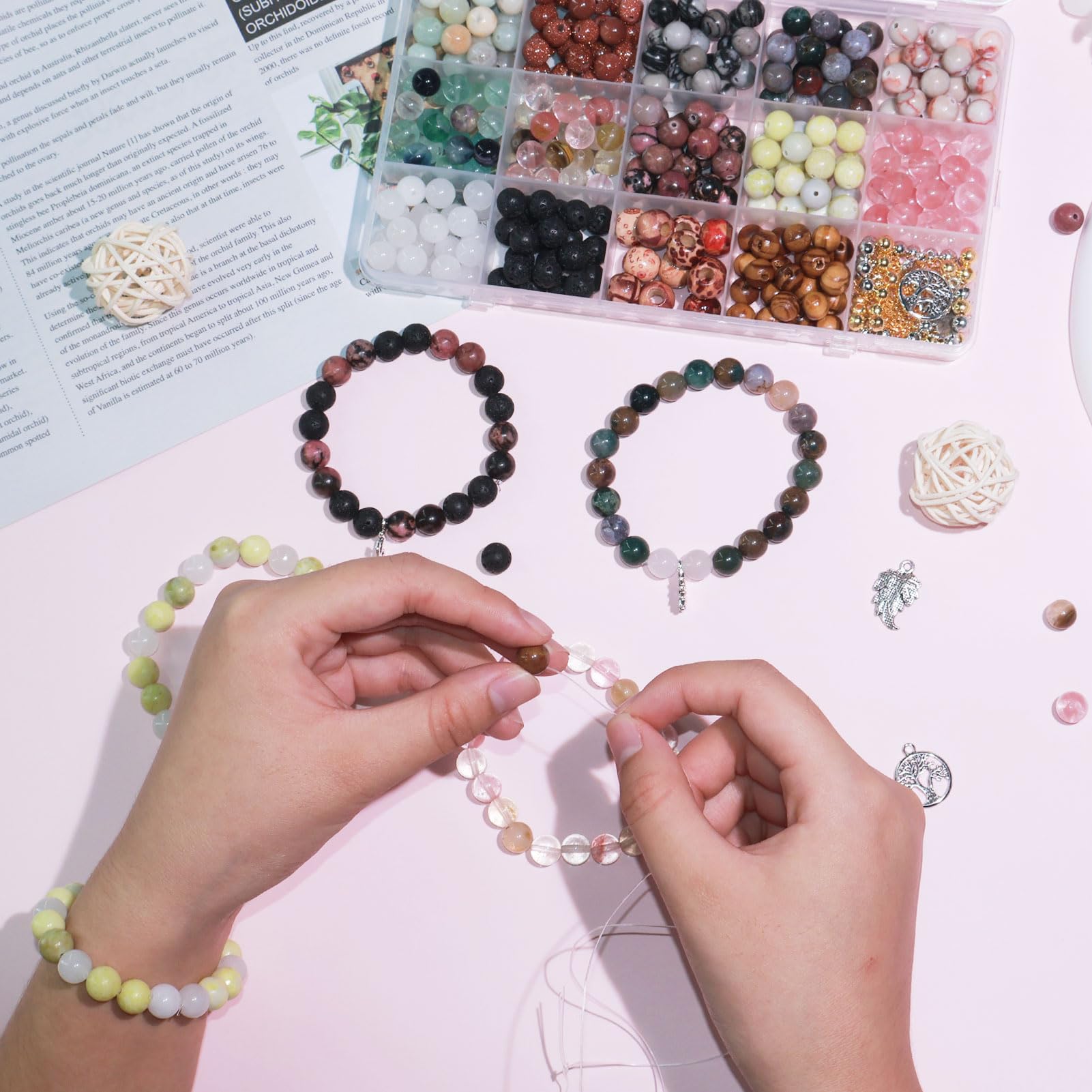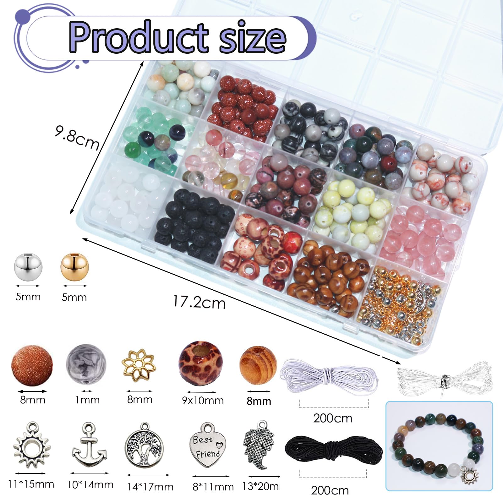 - Ensemble de perles de bracelet à bricoler soi-même en pierre naturelle, avec une surface lisse qui ne se décolore pas, ne se casse pas facilement et est durable.Idéal pour les débutants et les professionnels pour faire des bijoux à bricoler soi-même.