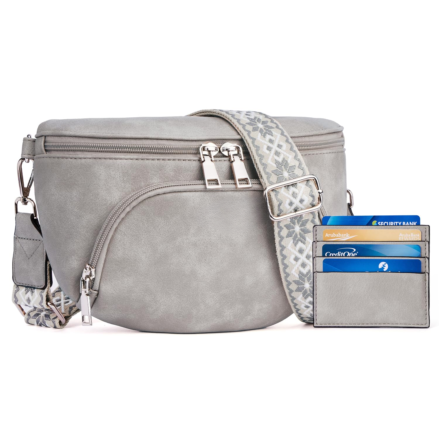 Sacs à bandoulière, sac à bandoulière en cuir végétal, sac à bandoulière pour dames, pochette de poitrine avec fente pour cartes, blocage RFID, avec large bandoulière détachable et réglable