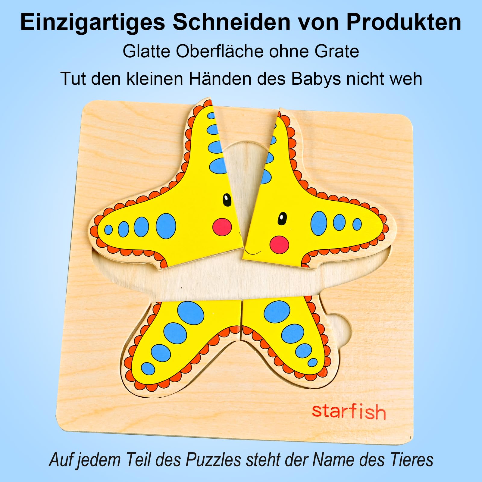 - Mignon puzzle en bois pour les tout-petits : Les noms des animaux sont écrits sur chaque puzzle jouet éducatif pour les tout-petits : Pieuvre, baleine, hippocampe, étoile de mer, dauphin, tuetle, poisson-globe, crabe. Aidez les enfants à comprendre les animaux en jouant à des jeux de puzzle en bois.