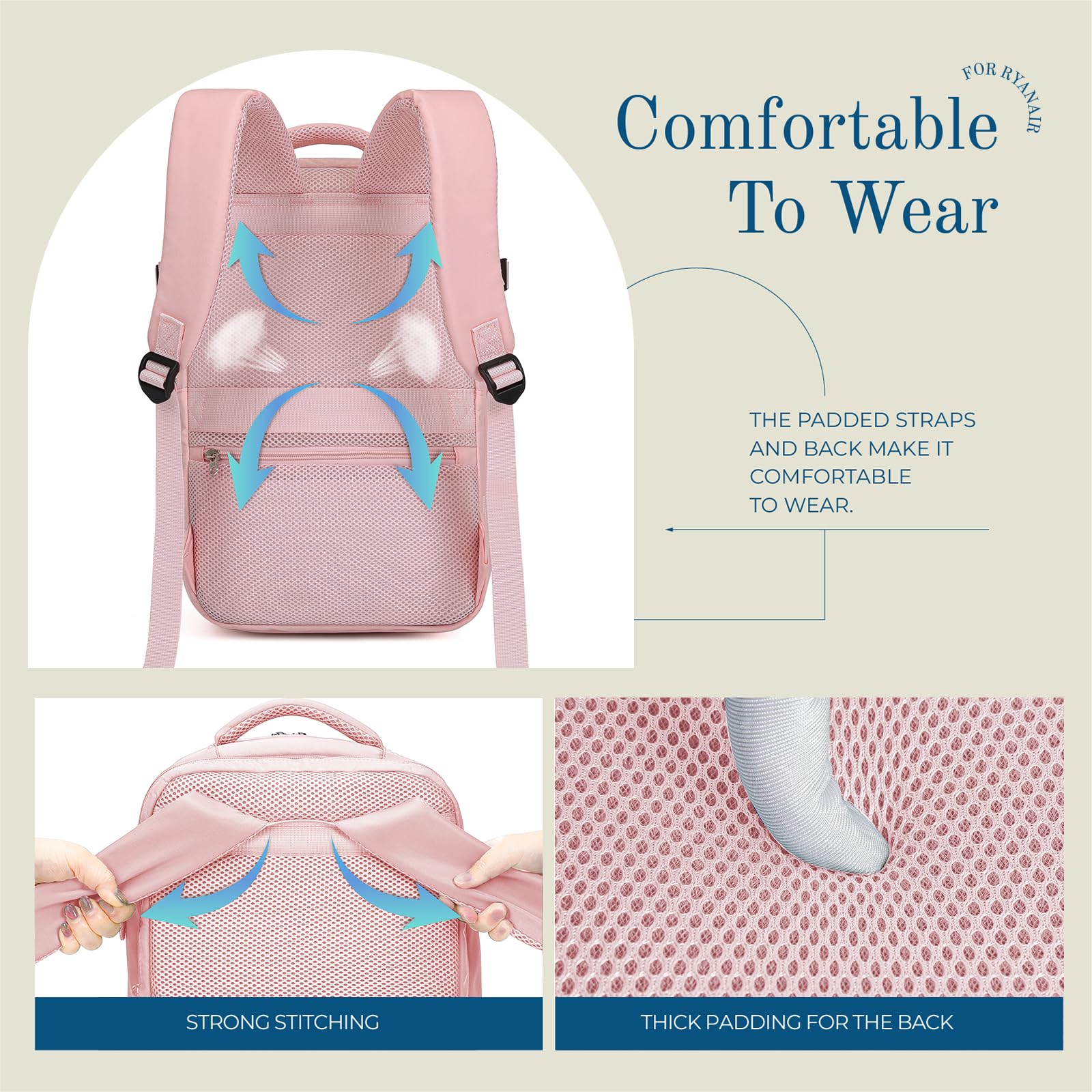 • Nous utilisons un matériau alvéolé respirant pour la bandoulière et le dos rembourrés, ce qui permet de rester au frais lorsque vous portez le sac à dos pendant une longue période. C'est un sac à dos idéal pour le travail de bureau et les voyages en plein air.