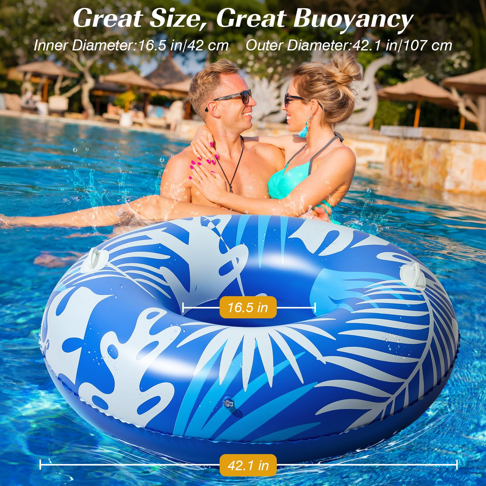 - Grande taille et double poignée: Le diamètre extérieur gonflable est de 42,1 pouces / 107 cm et le diamètre intérieur est de 16,5 pouces/42 cm. Un anneau de natation de piscine pratique ou des salons de piscine si vous avez besoin d'une pause. La conception à double poignée est ergonomique, ce qui facilite le maintien de la stabilité et de l'équilibre dans l'eau.