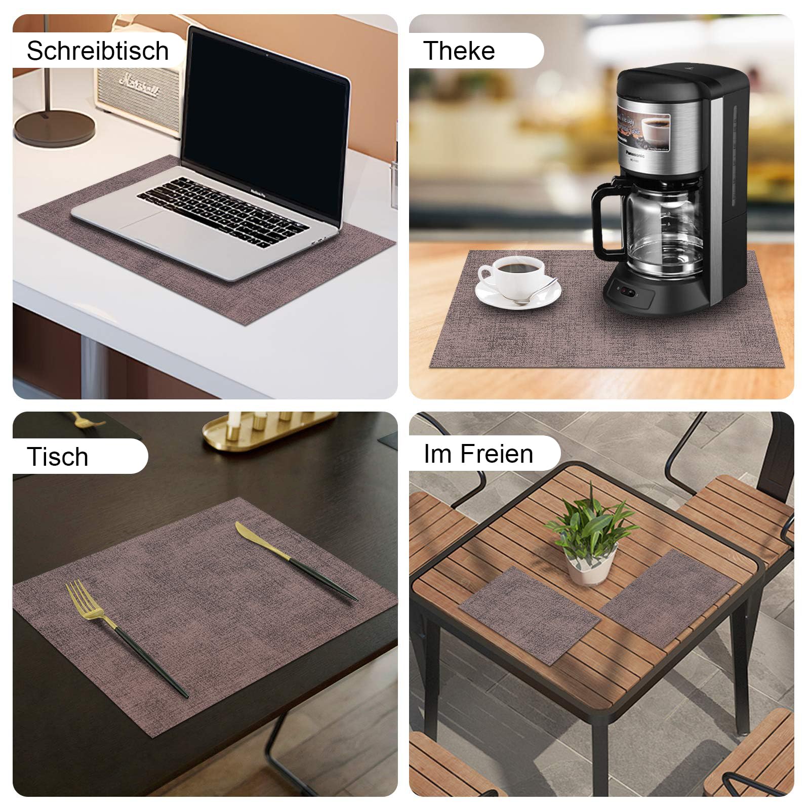 • Matériaux de haute qualité : Nos sets de table sont fabriqués en polyester 100 % faux cuir. Les sets de table en cuir, exquis et élégants, sont fabriqués avec soin, sont solides et durables pour une utilisation à long terme. Ils protègent efficacement votre table des rayures, de la chaleur et des taches, prolongeant ainsi la durée de vie de votre table.