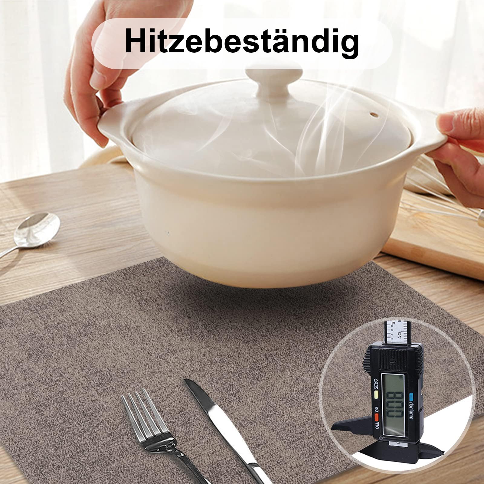 • Utilisables des deux côtés : Nos sets de table sont dotés d'un design épais sur les deux faces, avec une texture en lin sur les deux côtés pour une meilleure résistance au glissement et une isolation jusqu'à 212°F, protégeant ainsi efficacement votre table des dommages causés par la chaleur.