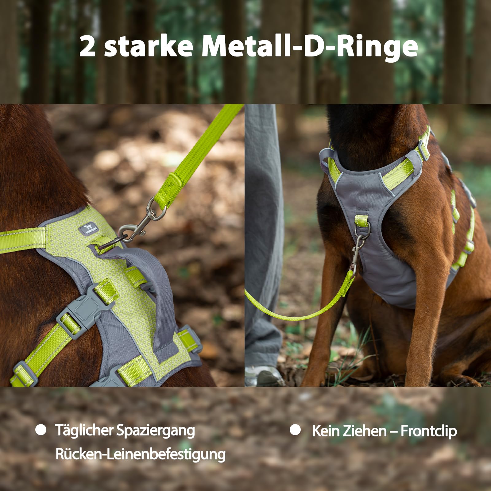 - Points de fixation multiples de la laisse: Ce harnais de sécurité anti-évasion pour chien offre 2 options pour la fixation de la laisse. Le point d'attache sur la poitrine permet un contrôle efficace avec un minimum d'effort, tandis qu'il y a un autre point d'attache sur le dos pour une posture plus détendue ou de traction.