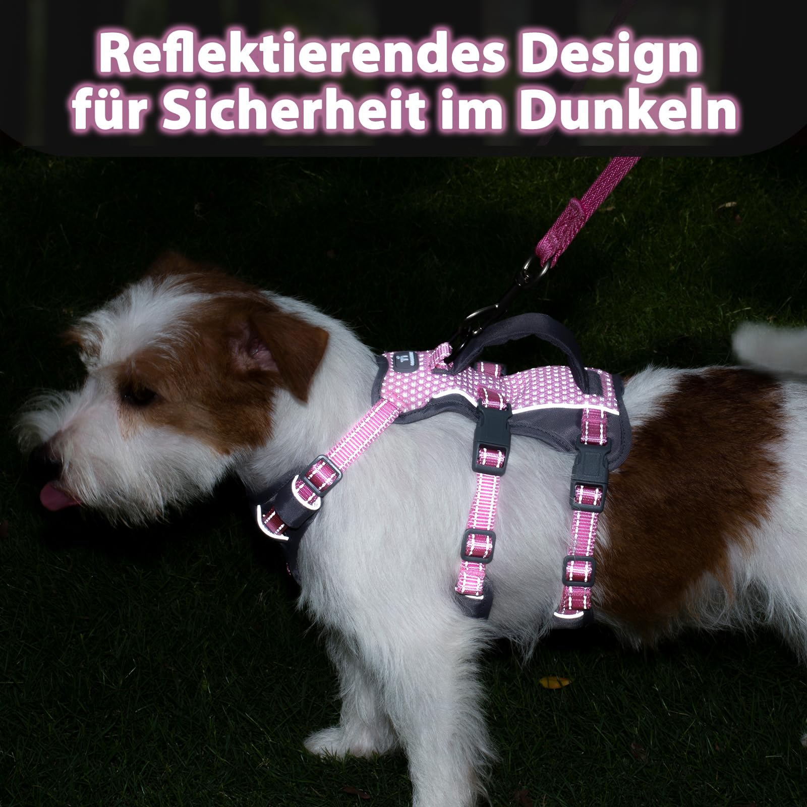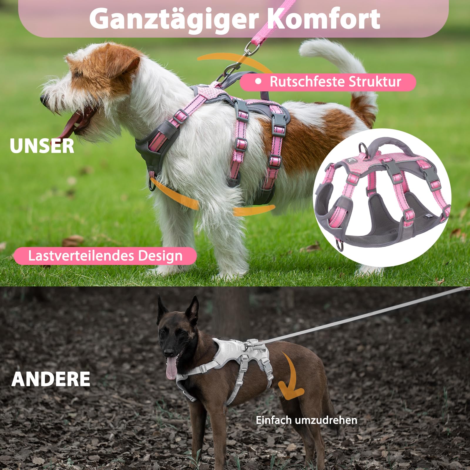 - Harnais pour chien avec poignée rembourrée pour le levage: La poignée rembourrée offre une protection et une prise sûre afin que vous puissiez aider votre chien à surmonter les obstacles ou exercer un contrôle immédiat pendant les voyages ou les séances d'entraînement. Cette poignée souple est particulièrement utile lorsque votre chien rencontre d'autres chiens ou doit traverser des routes, et offre un contrôle et un soutien immédiats pour éviter les dangers potentiels.
