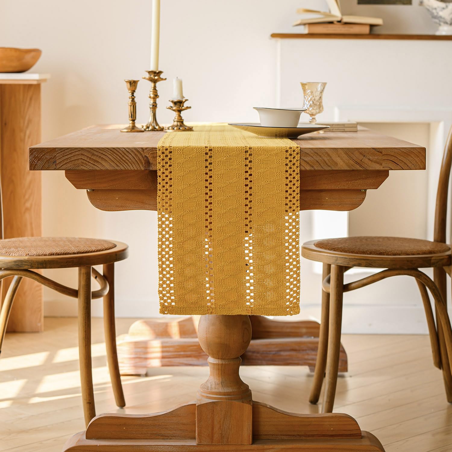 • Décoration bohème: Notre chemin de table bohème lavable allie une atmosphère minimaliste au charme bohème et donne un nouveau look à votre table. C'est une pièce d'accent pour plus d'endroits que votre table à manger! Essayez ce chemin de table de style campagnard vintage dans une entrée, sur une commode, une table de pique-nique, un bureau, une coiffeuse ou comme chemin de table basse
