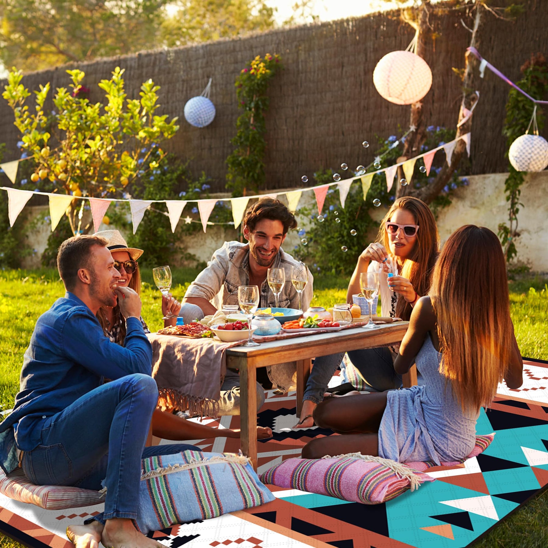 - Nombreuses applications : L'élégante et belle couverture de pique-nique peut être utilisée non seulement pour les fêtes de jardin, les pique-niques sur l'herbe, les barbecues sur la plage, le camping, les tapis de randonnée, mais aussi pour les enfants qui rampent à l'intérieur et les tapis de yoga.