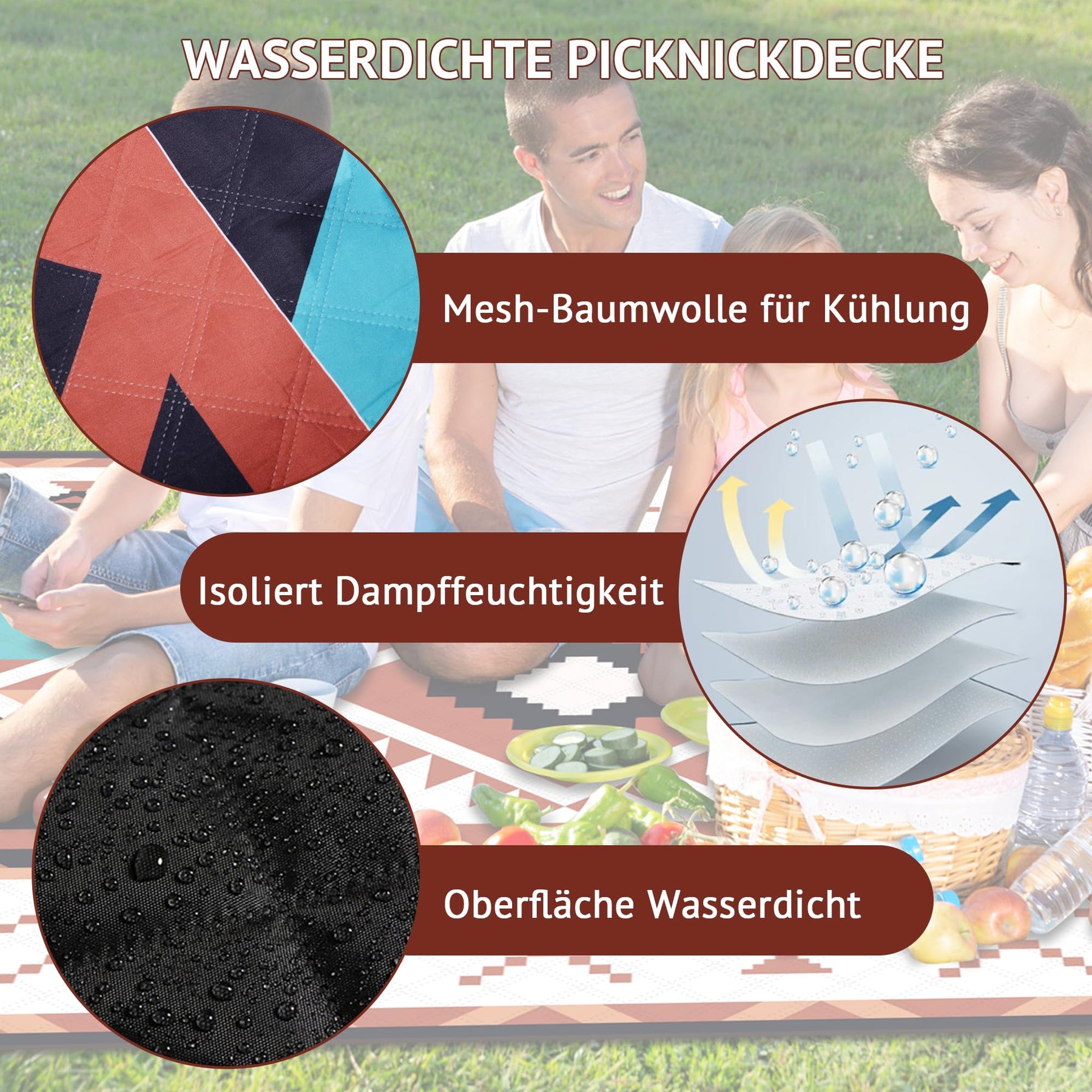 - Multifonctionnelle et complète : La couverture de pique-nique est fabriquée en tissu de coton, si doux qu'il est agréable de s'allonger confortablement sur l'herbe. La surface de la couverture de pique-nique est faite d'un matériau spécial pour empêcher la vapeur d'eau de pénétrer ; le fond de la couverture de plage est conçu avec des coutures fines et serrées pour empêcher efficacement le sable et l'isolation thermique, apportant à chacun un été frais.