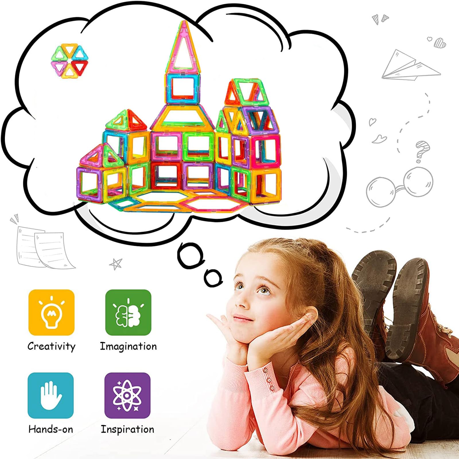 - Les jouets magnétiques peuvent stimuler les connaissances potentielles des enfants dans le cerveau. La reconnaissance des couleurs et des formes, la créativité et l'imagination, la motricité, la manipulation, la réflexion et la résolution de problèmes, la construction et la conception sont développées en jouant.