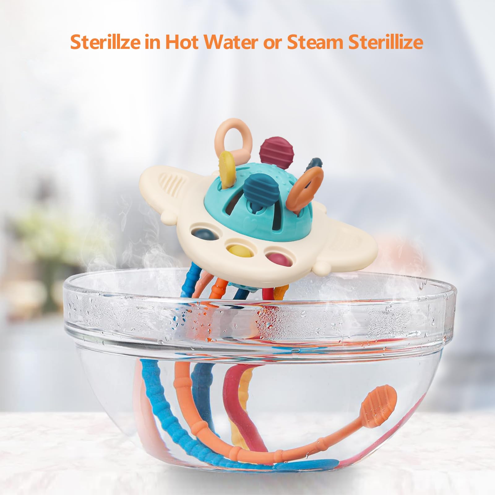 Jouet sensoriel bébé, anneau de dentition bébé, cordon de traction en silicone, forme avion, suspendu