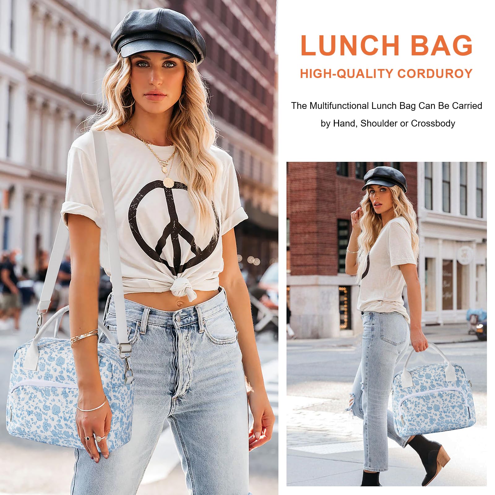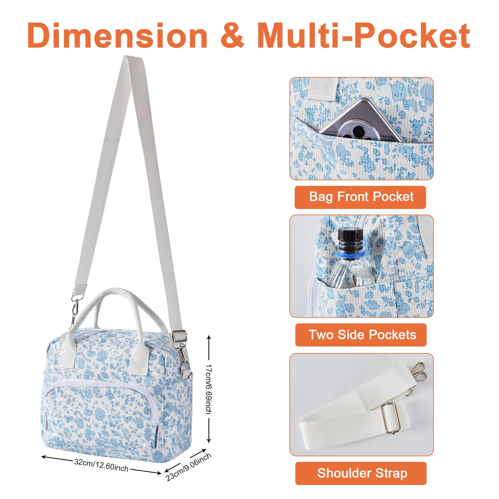 - Design élégant et large utilisation-Parfait pour le déjeuner au bureau, ce joli sac à lunch en velours côtelé peut également être utilisé comme sac de tous les jours décontracté ou même comme trousse de maquillage, adapté à diverses occasions telles que le travail, les voyages, la plage, le pique-nique, la fête, etc.